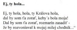 Vrcholným aktom bola báseň "Ej ty hoľa, ty Kráľova hoľa..." v podaní neopakovateľnej recitátorky Mirky Bača Valachovej. Na záver celá KOMUNITA (ako by ich jedna mater mala) zanôtila zvučným hlasom írečitú slovenskú pieseň, typickú pre toto magické miesto - "Na Kráľovej holi stojí strom zelený..." - známa melódia sa niesla nízkotaranskou prírodou. Nikomu v tom momente neprekážalo, že navôkoľ nie je ani len kríčôček, tobôž "strom zelený".