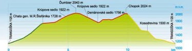 Penzión Tále – autom po chata Trangoška – pešia túra Ďumbier – pešia túra na Chopok po vrstevnici – cesta dolu lanovkou chata Trangoška - autom Penzión Tále